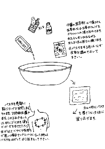 生のびわの葉が手に入る方は手軽にできるコンニャク湿布を紹介します。